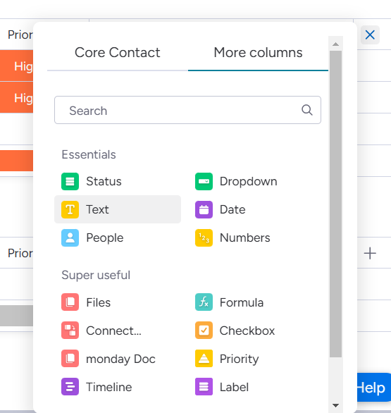 2. Open the More columns tab and select a field of the Text type.