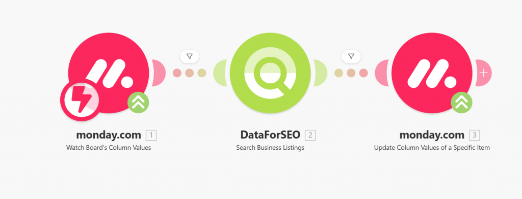 This workflow delivers automatically enriched CRM records in Monday, filled with detailed business information pulled directly from the DataForSEO Business Data API. Your CRM items will include structured company descriptions, industry classifications, rating metrics, location details, and contact information – all without manual research. These enhanced profiles help you better segment, prioritize, and engage prospects and customers more effectively.