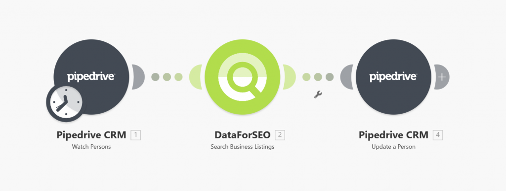 This Make.com template automatically enriches your Pipedrive contacts and organizations with detailed business information using the DataForSEO Business Data API. Rather than manually researching company details, this workflow fetches structured business insights – such as company overview, industry categories, ratings, address, and contact information – and writes them directly into your Pipedrive CRM.