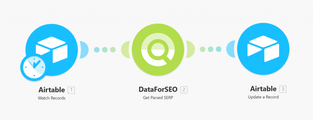 This workflow automatically updates your Airtable records with the latest Google SERP positions for specified keywords and target URLs. Using the DataForSEO SERP API, it retrieves ranking data whenever a new record is created, keeping your database current without manual searches or updates.