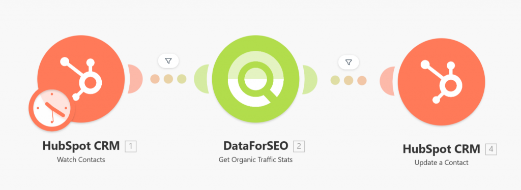 This Make.com template automatically enriches your HubSpot contacts or deals with search traffic estimates pulled from the DataForSEO API. Instead of manually pulling data from multiple sources, this workflow retrieves search demand metrics tied to your domains and updates your HubSpot records accordingly. This helps you better understand keyword interest and audience potential without any manual effort.
