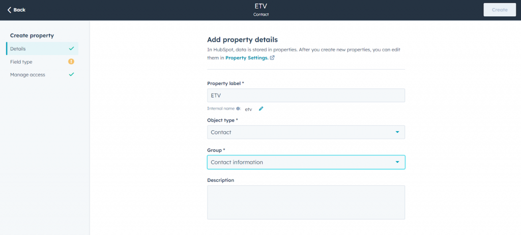 - Click the Create property button.