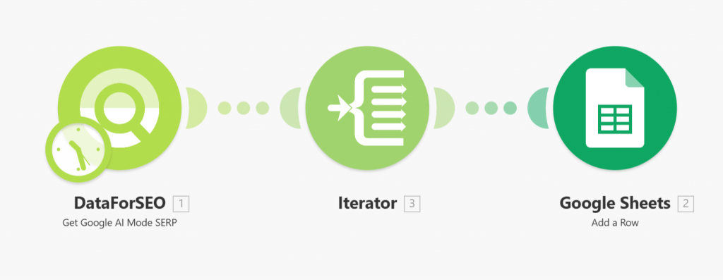 - It sends a request to the DataForSEO API to retrieve Google AI Mode results for a specified keyword.
